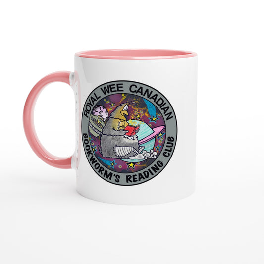 Royal Wee Canadian Bookworm's Reading Club, Grouse & Wurm Read Sci-Fi PINK, 11oz Ceramic Mug with Colour Inside