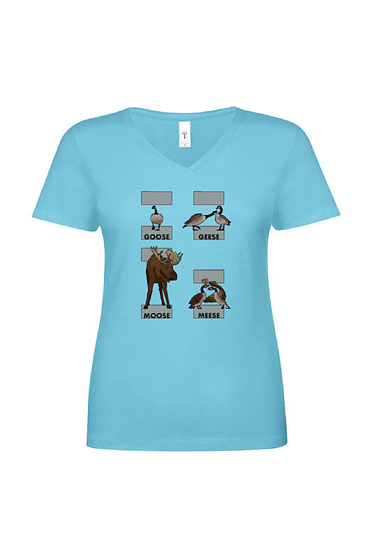 1/2 Apple, WEIRD ENGLISH, Goose Geese Moose Meese, NextLevel 60% Cotton, Women's V-Neck