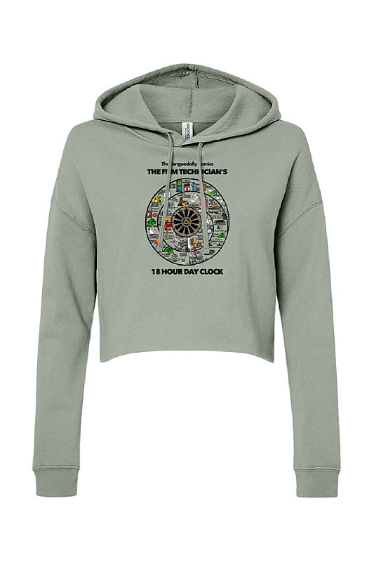 The Tonguedolly Comics, Film Technician's 18hr Day Clock No BG, Independent 50-50 Cotton, Women's Cropped Hoodie