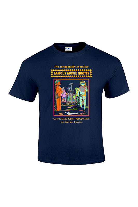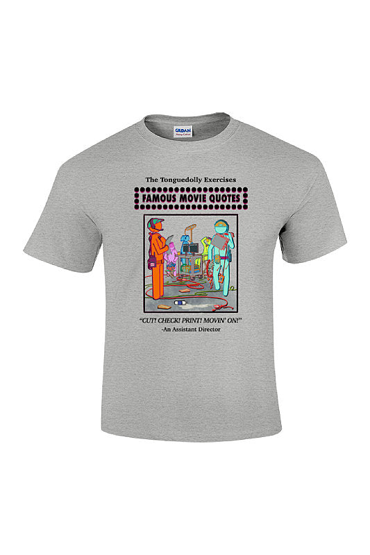The Tonguedolly Comics, Famous Movie Quotes, "Cut! Check! Print! Movin' On!" Dark, Gildan 5000 100% Cotton, Unisex T-Shirt