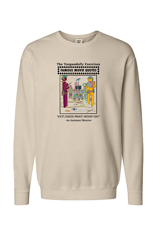 The Tonguedolly Comics, Famous Movie Quotes, "Cut! Check! Print! Movin' On!" Raz/Mango, C.C. 100% Cotton, Unisex Sweatshirt