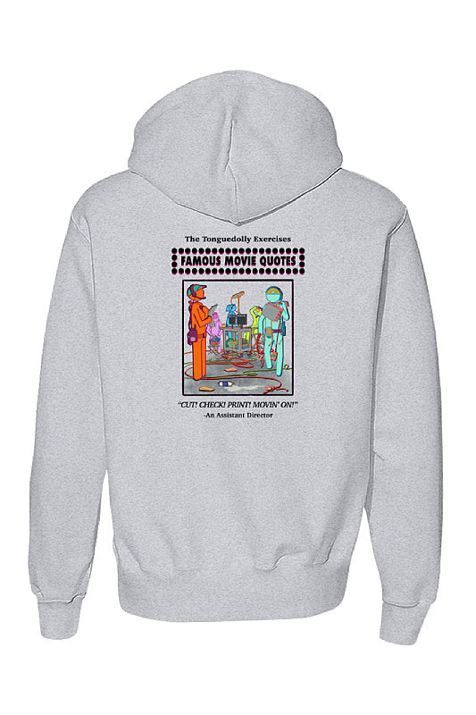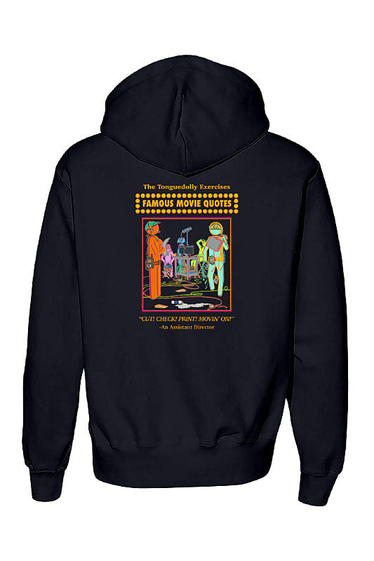 The Tonguedolly Comics, Famous Movie Quotes, "Cut! Check! Print! Movin' On!", Lite Champion 78-82% Cotton, Unisex Hoodie, BACK PRINT