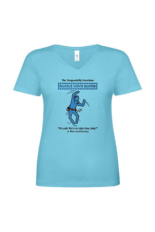 The Tonguedolly Comics, Famous Movie Quotes, "Oh, Yeah! We're in Triple Time, Baby!" NextLevel 60% Cotton, Women's V-Neck