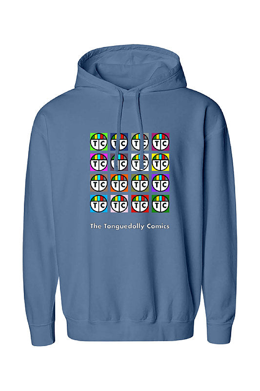 The Tonguedolly Comics, Multi Logo Test Pattern, C.C. 100% Cotton, Unisex Hoodie