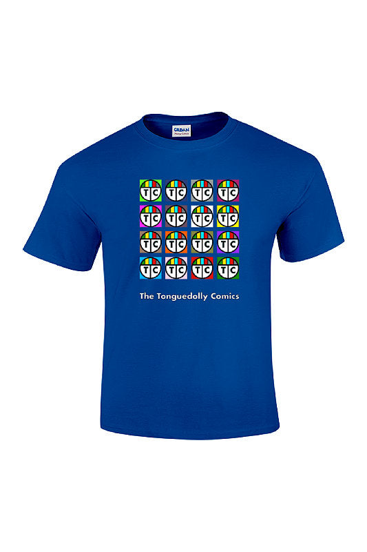 The Tonguedolly Comics, Multi Logo Test Pattern, Gildan 5000 100% Cotton, Unisex T-Shirt