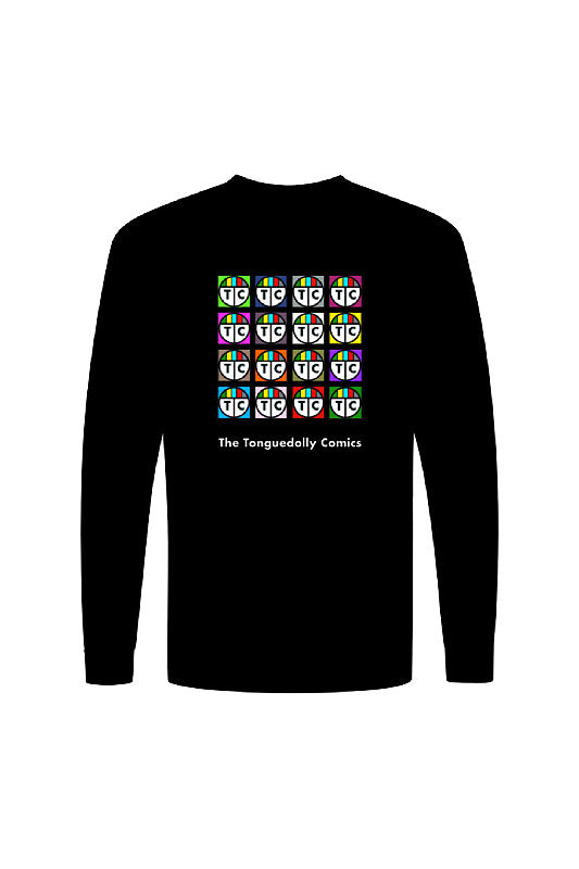 The Tonguedolly Comics, Multi Logo Test Pattern, C.C. 100% Cotton, Unisex Long Sleeve T-Shirt